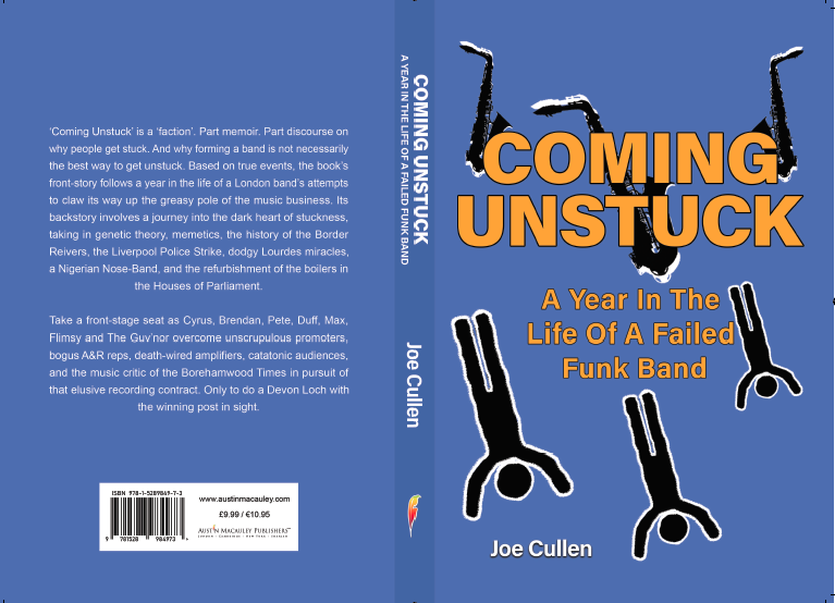 Joe Cullen's 'faction' - Coming Unstuck - a year in the life of a failed funk band - was published by Austin Macauley in December 2023